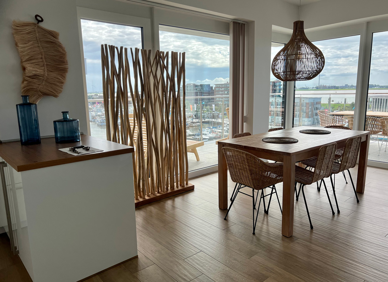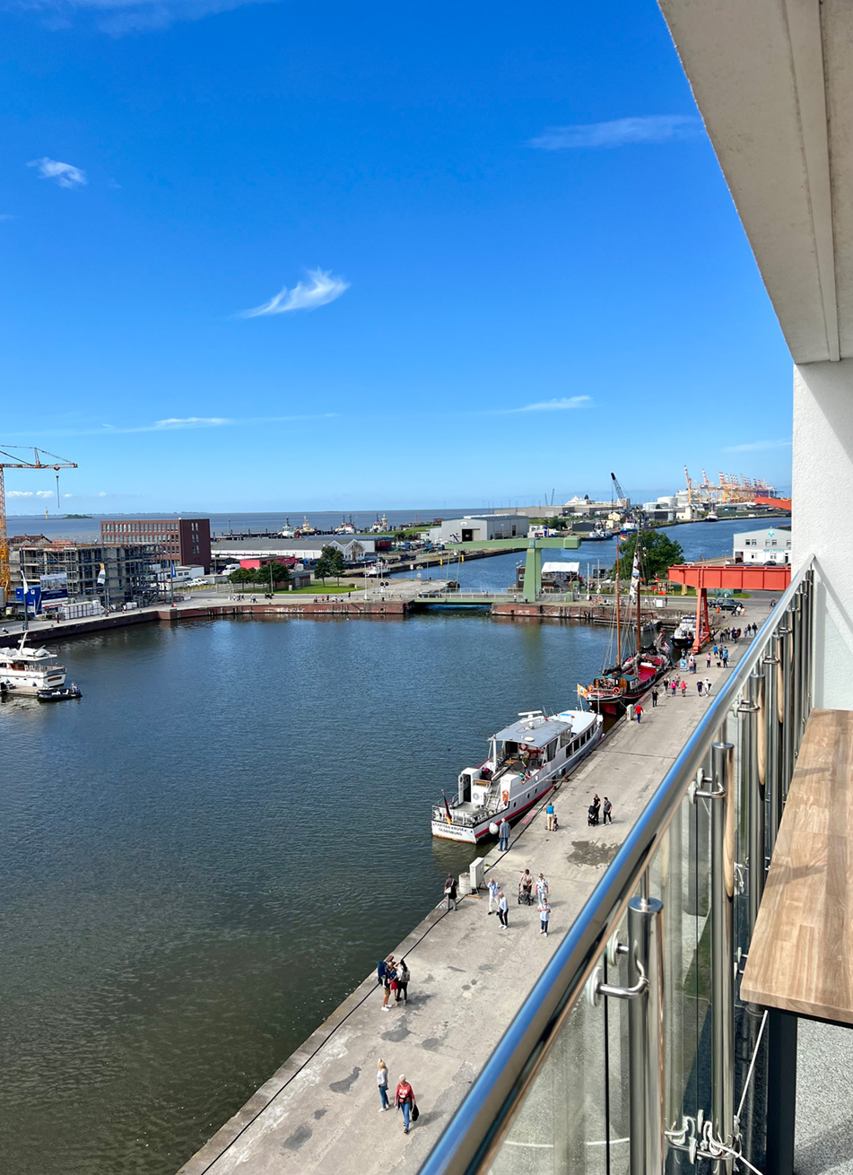 Unser lichtdurchflutetes Eck-Penthouse mit 180 Grad Panorama Balkon-Terrasse liegt direkt an der Bremerhavener Lloyd Marina.