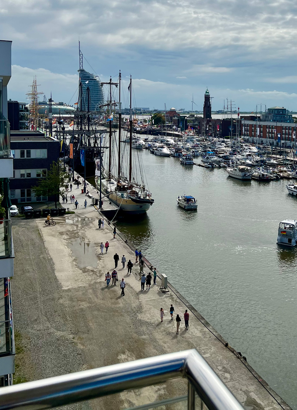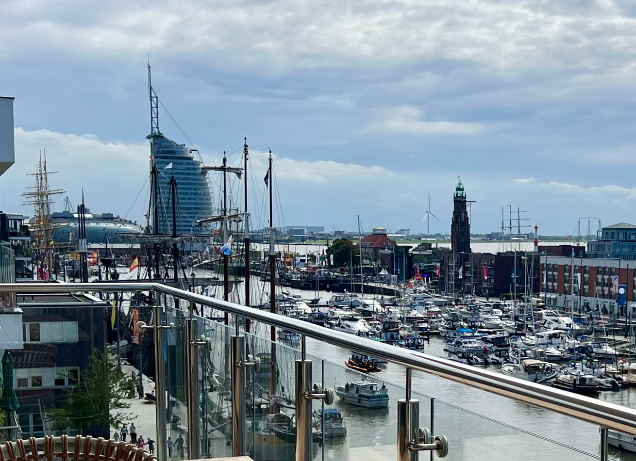 - Blick auf Weser, Nordsee, Yachthafen und Havenwelten